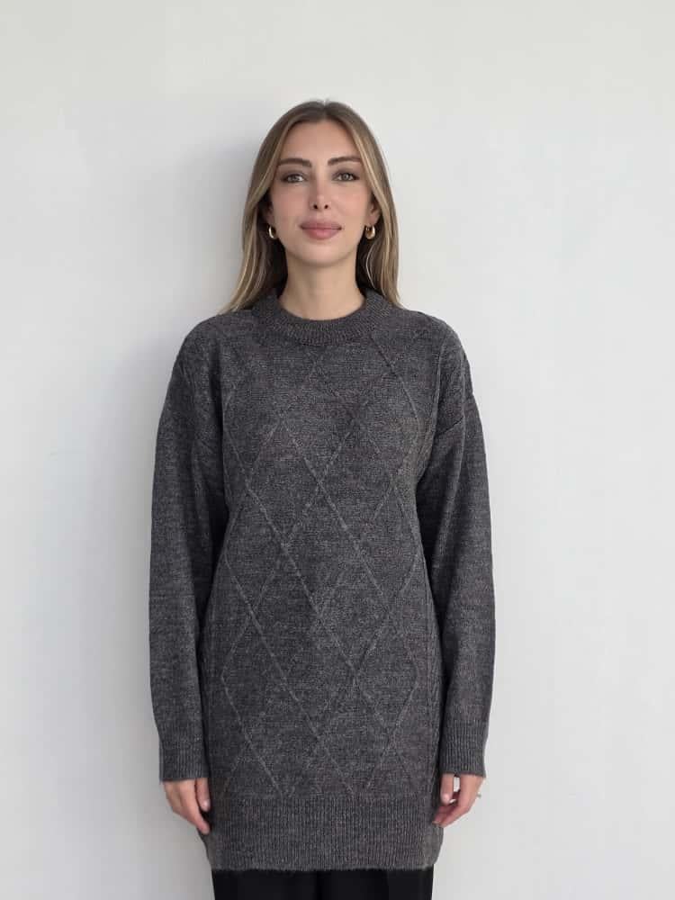 Antrasit Baklava Desenli Triko Tunik (GZ26K52634401_062)