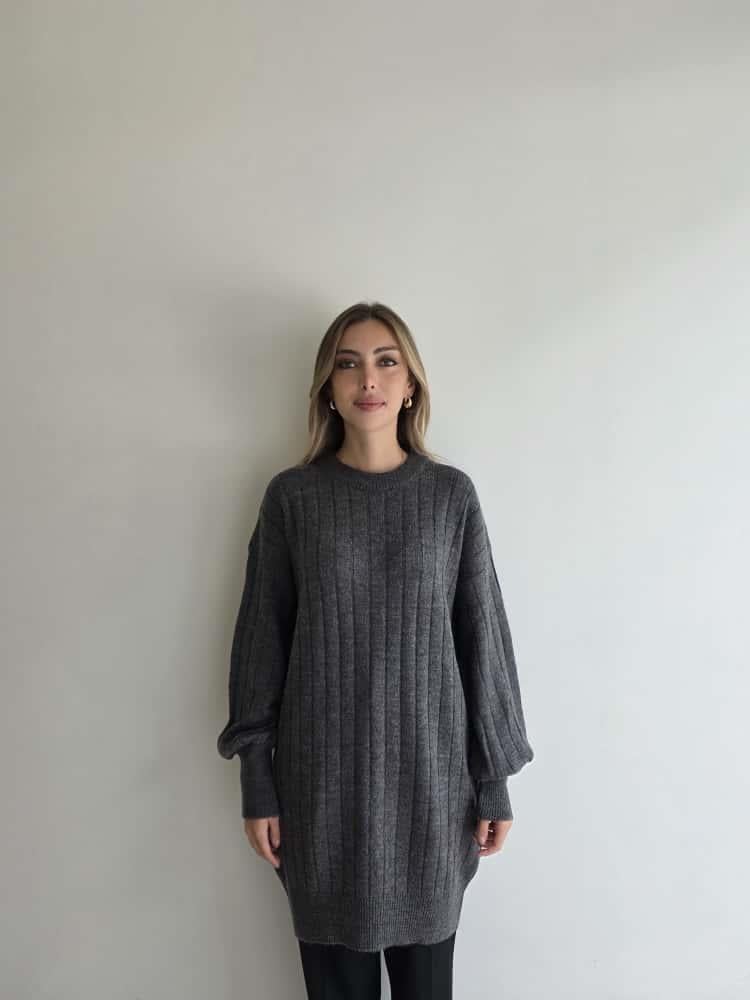 Antrasit Çizgi Desenli Triko Tunik (GZ26K52634801_062)