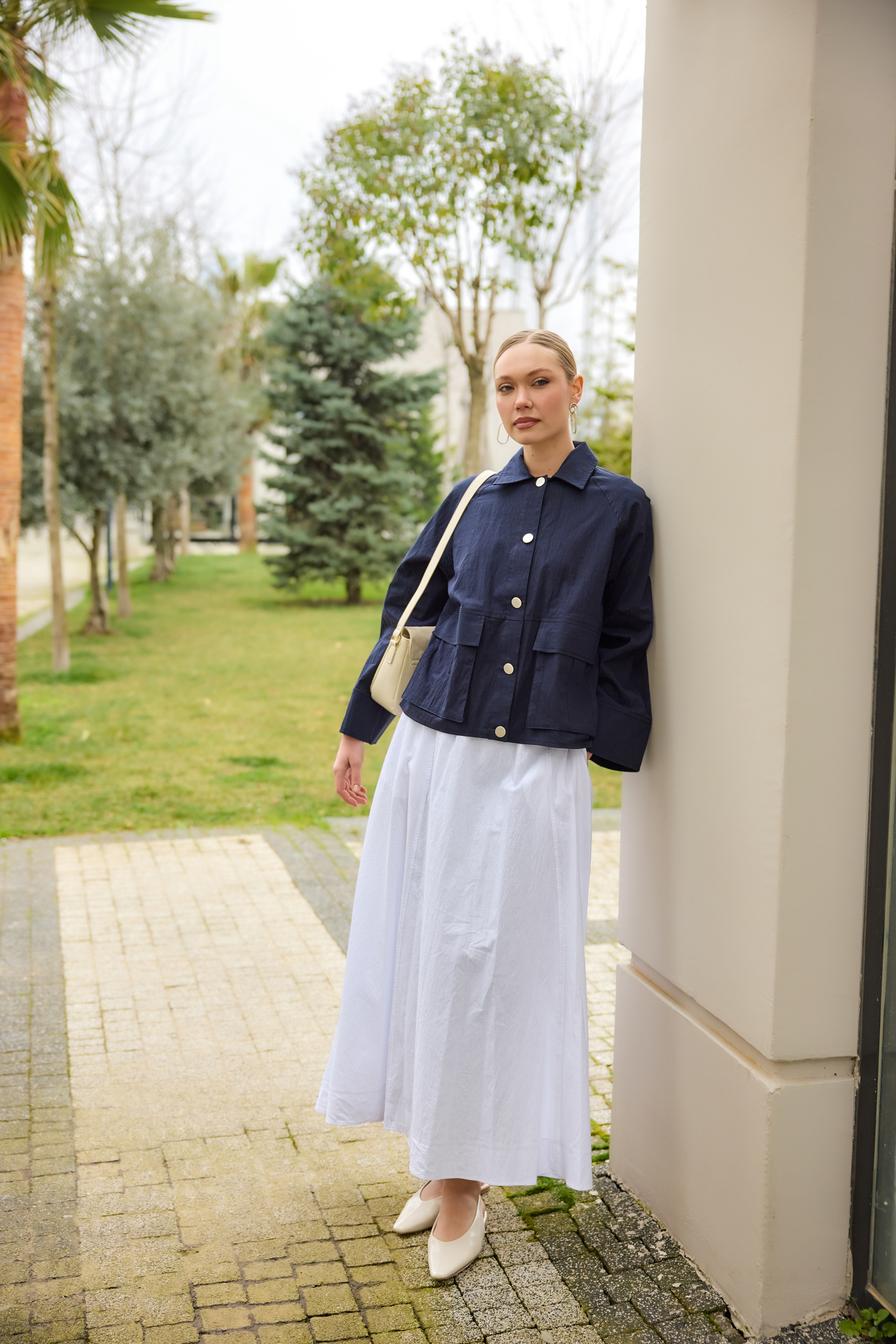 Beyaz Bel Lastikli Etek (GZ26Y52658001_002)