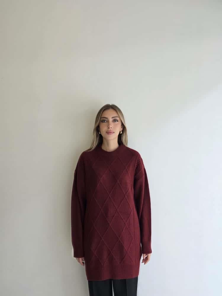 Bordo Baklava Desenli Triko Tunik (GZ26K52634401_031)