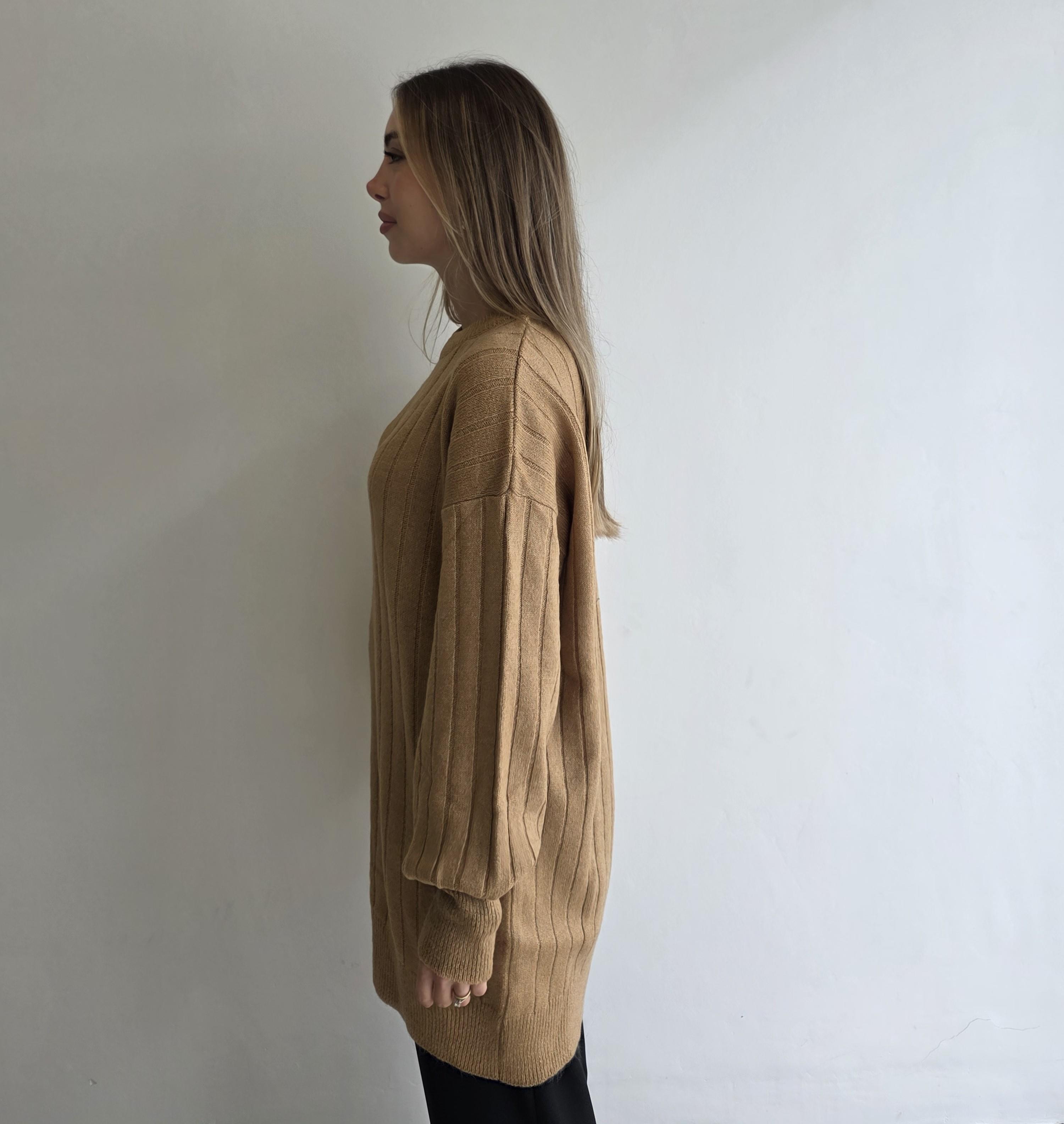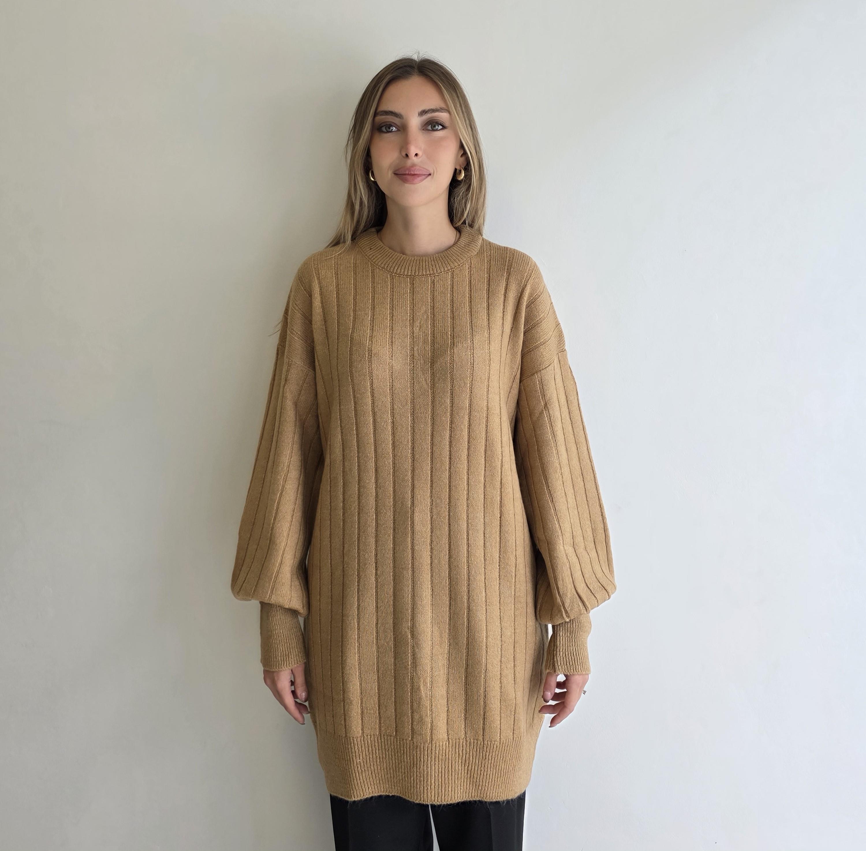 Camel Çizgi Desenli Triko Tunik (GZ26K52634801_017)