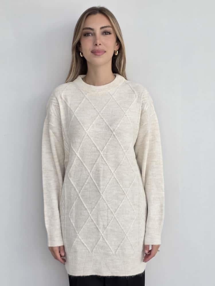 Ekru Baklava Desenli Triko Tunik (GZ26K52634401_032)