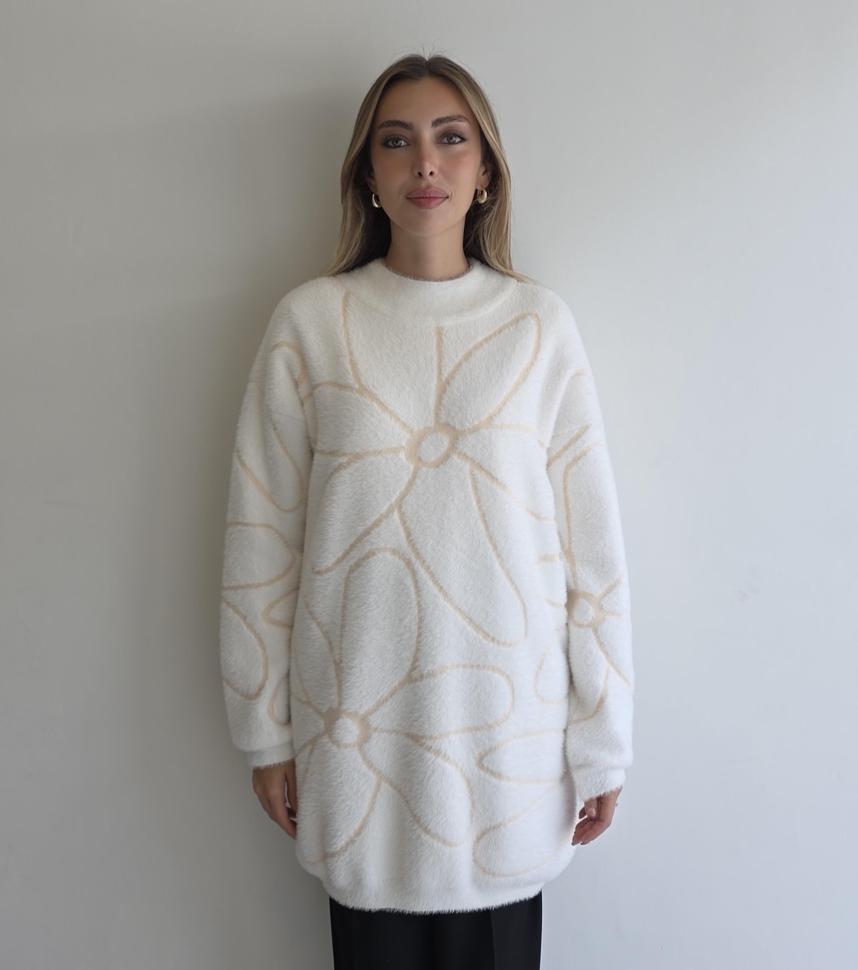 Ekru Çiçek Baskılı Triko Tunik (GZ26K52631901_032)