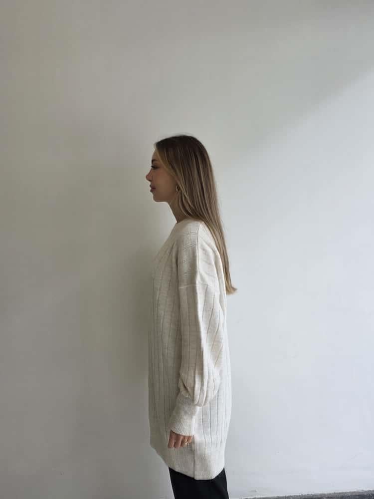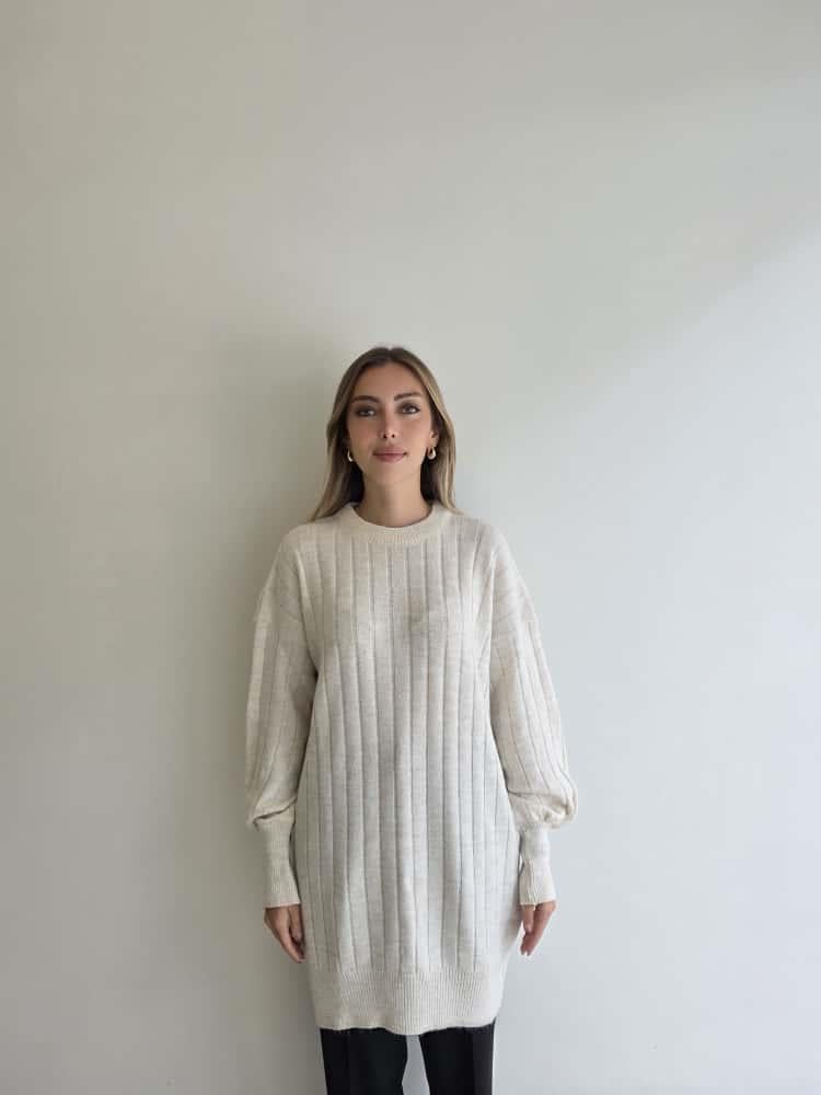 Ekru Çizgi Desenli Triko Tunik (GZ26K52634801_032)