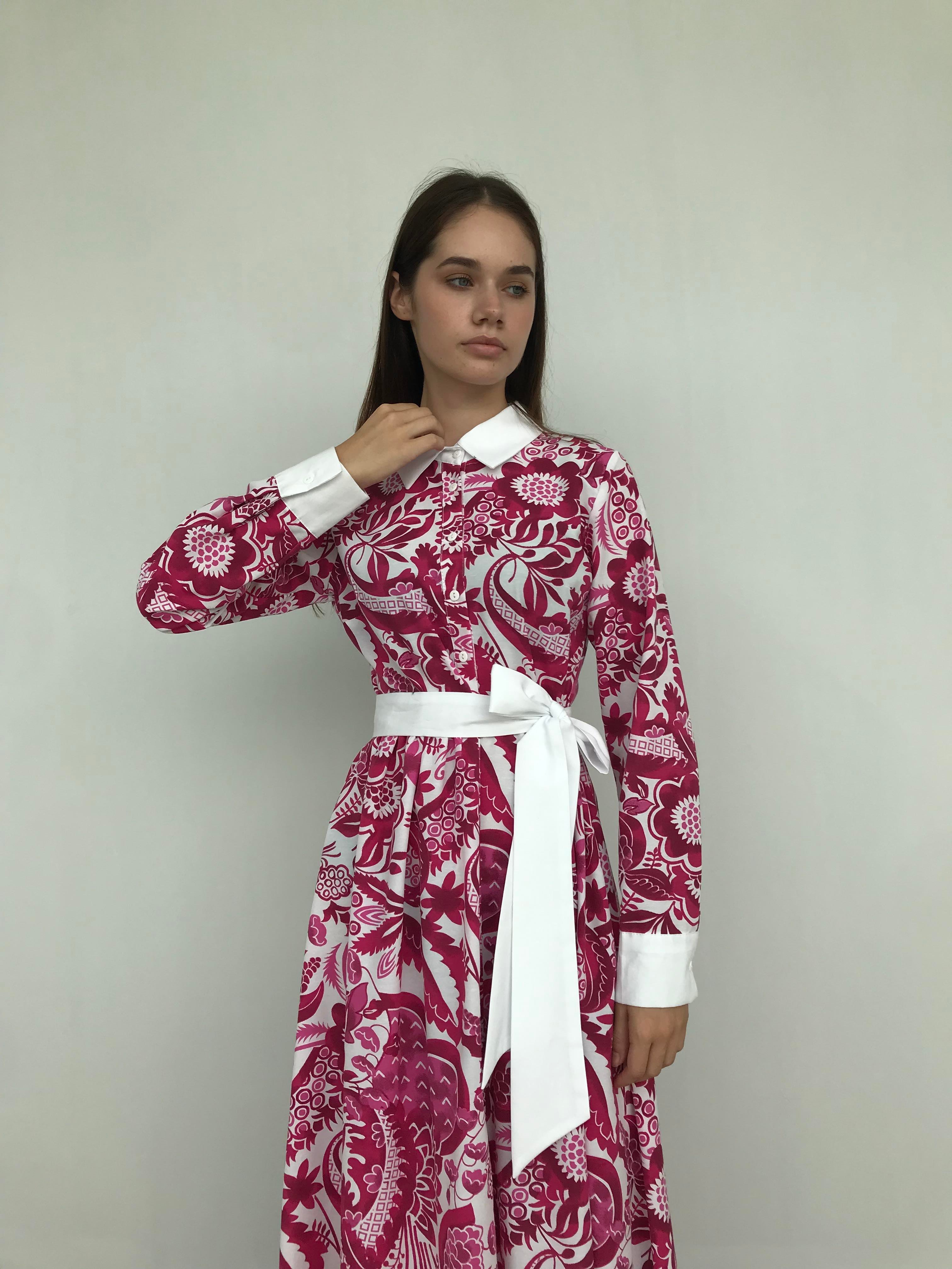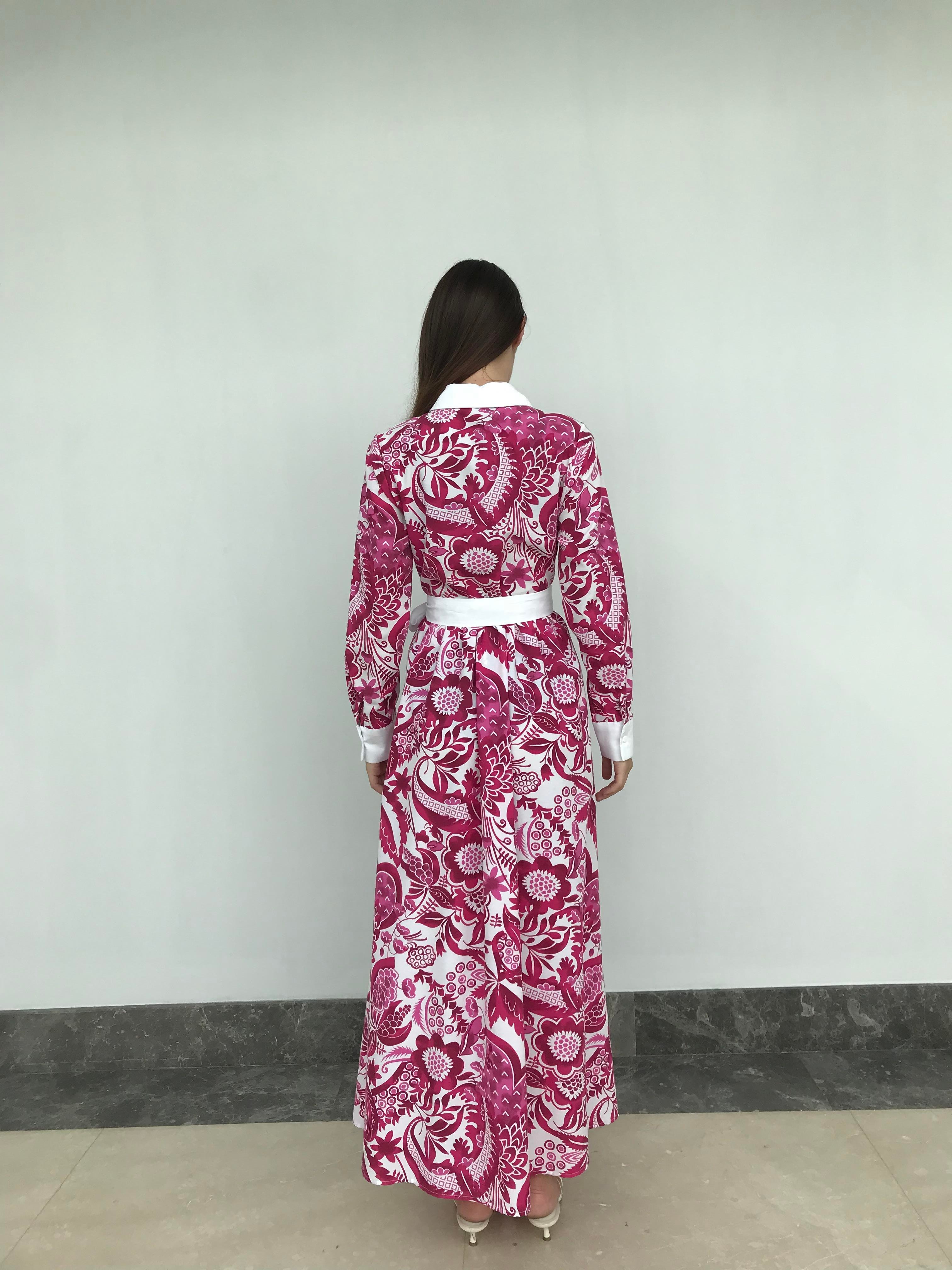 Fuşya Garni Detaylı Desenli Poplin Elbise (GZ24Y52426501_011)