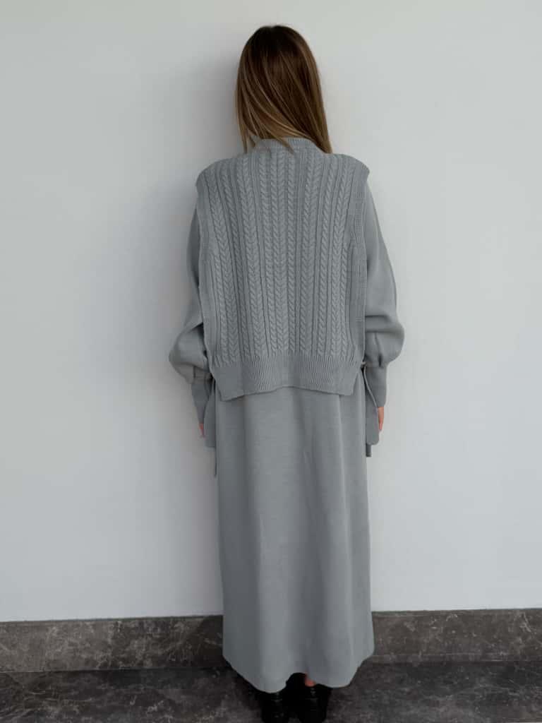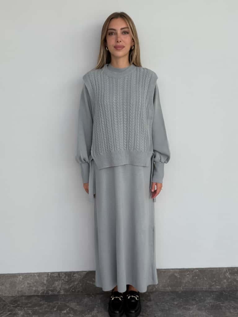 Gri İkili Triko Elbise (GZ26K52632801_020)