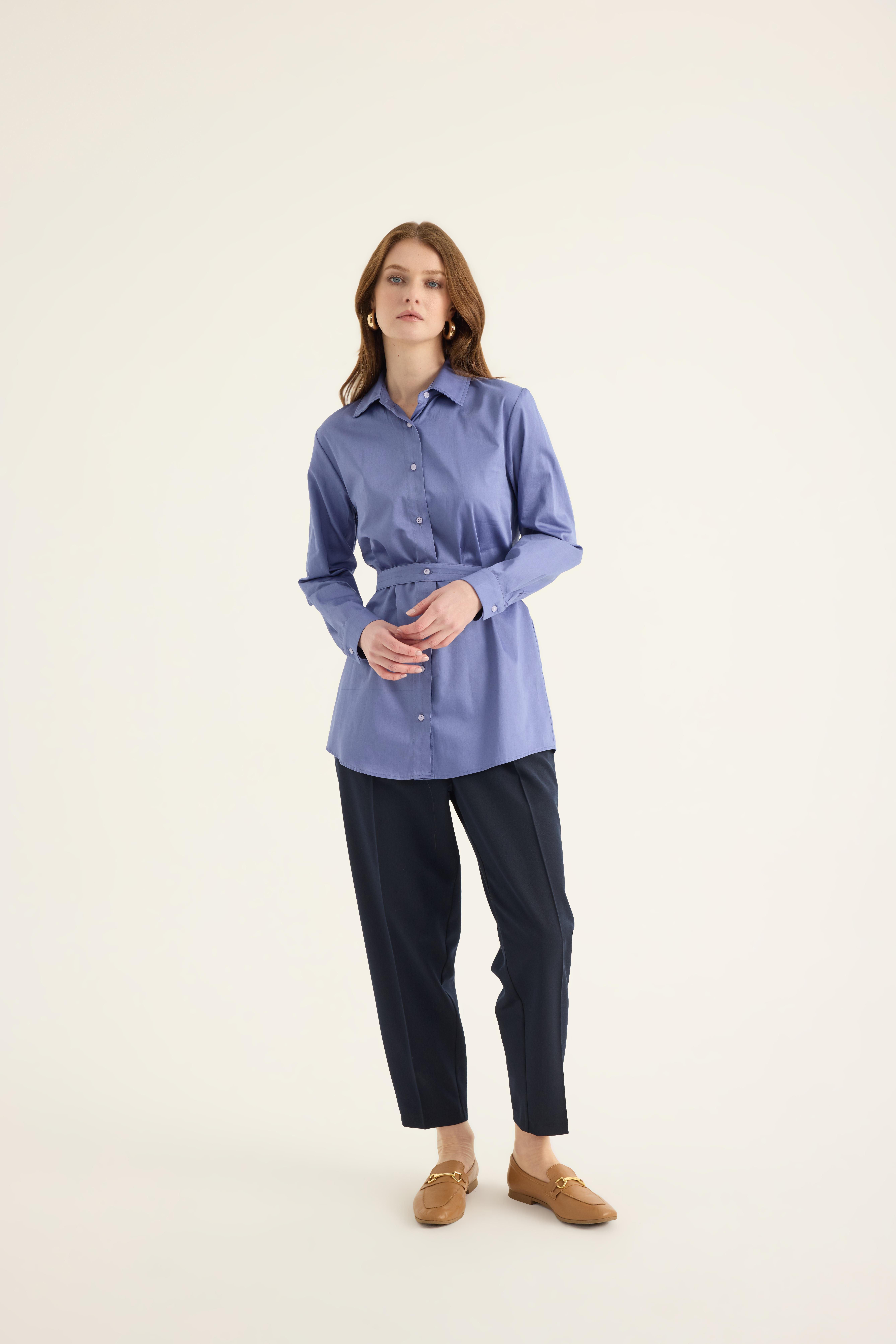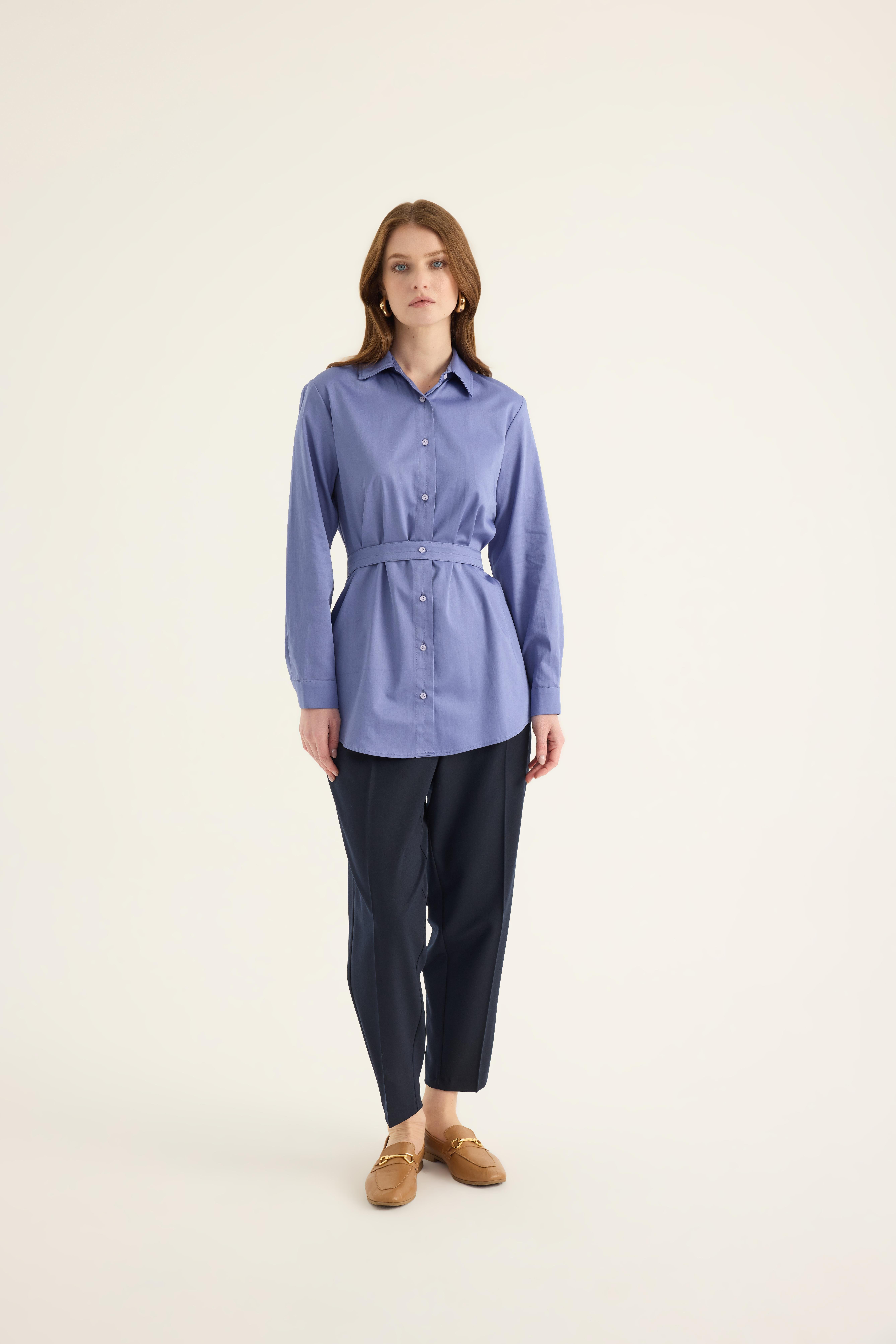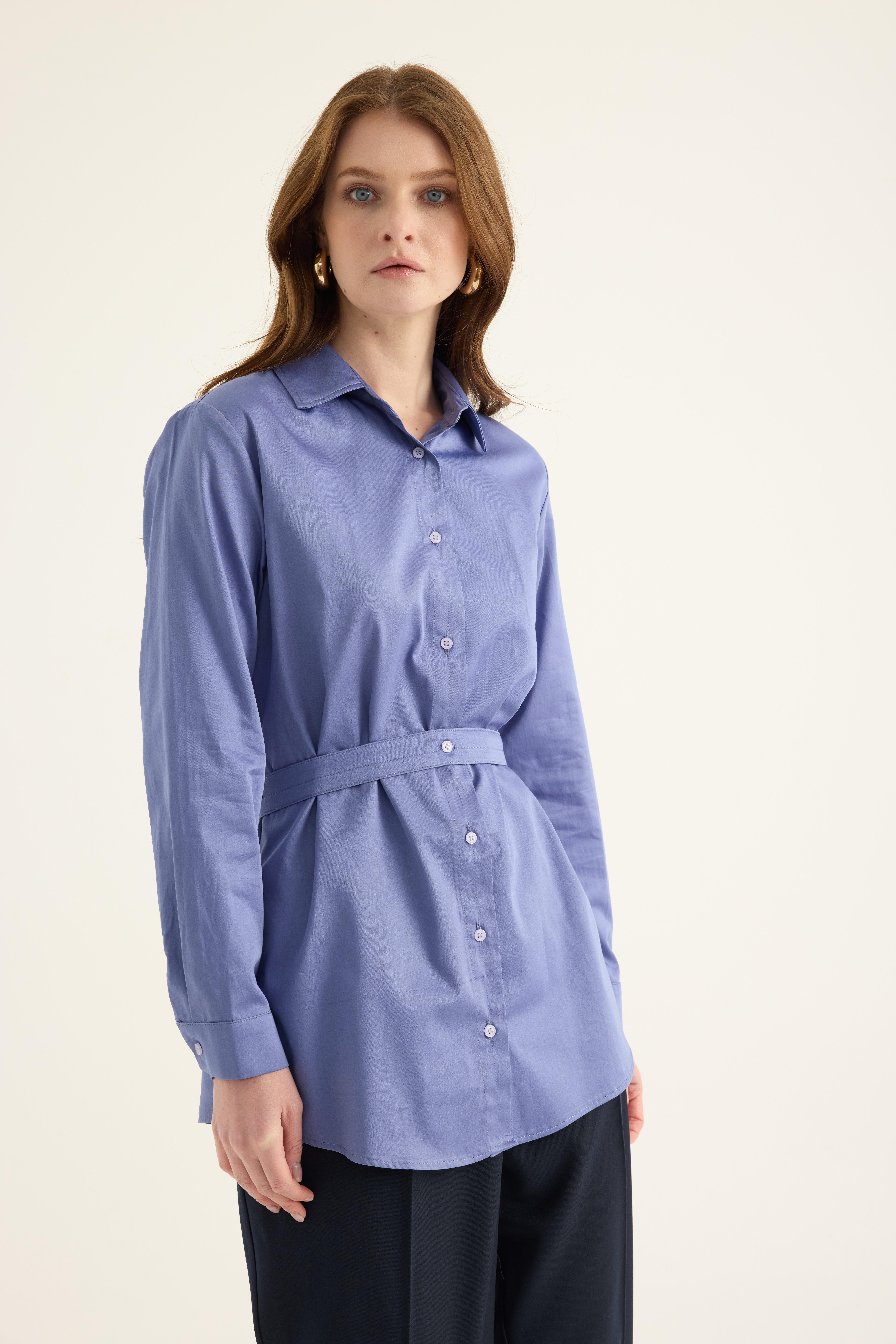 Açık Mavi Bel Kemerli Gömlek Pudra Bel Kemerli Gömlek Beyaz Bel Kemerli Gömlek İndigo Bel Kemerli Gömlek