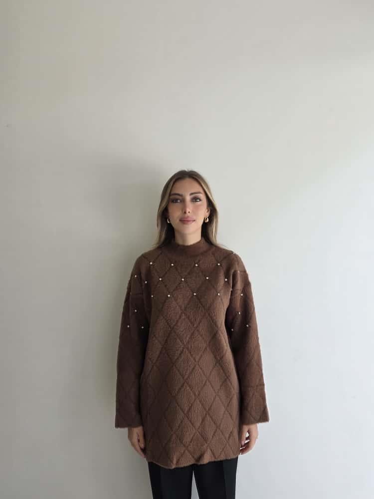 Kahverengi Taşlı Triko Tunik (GZ26K52631301_012)