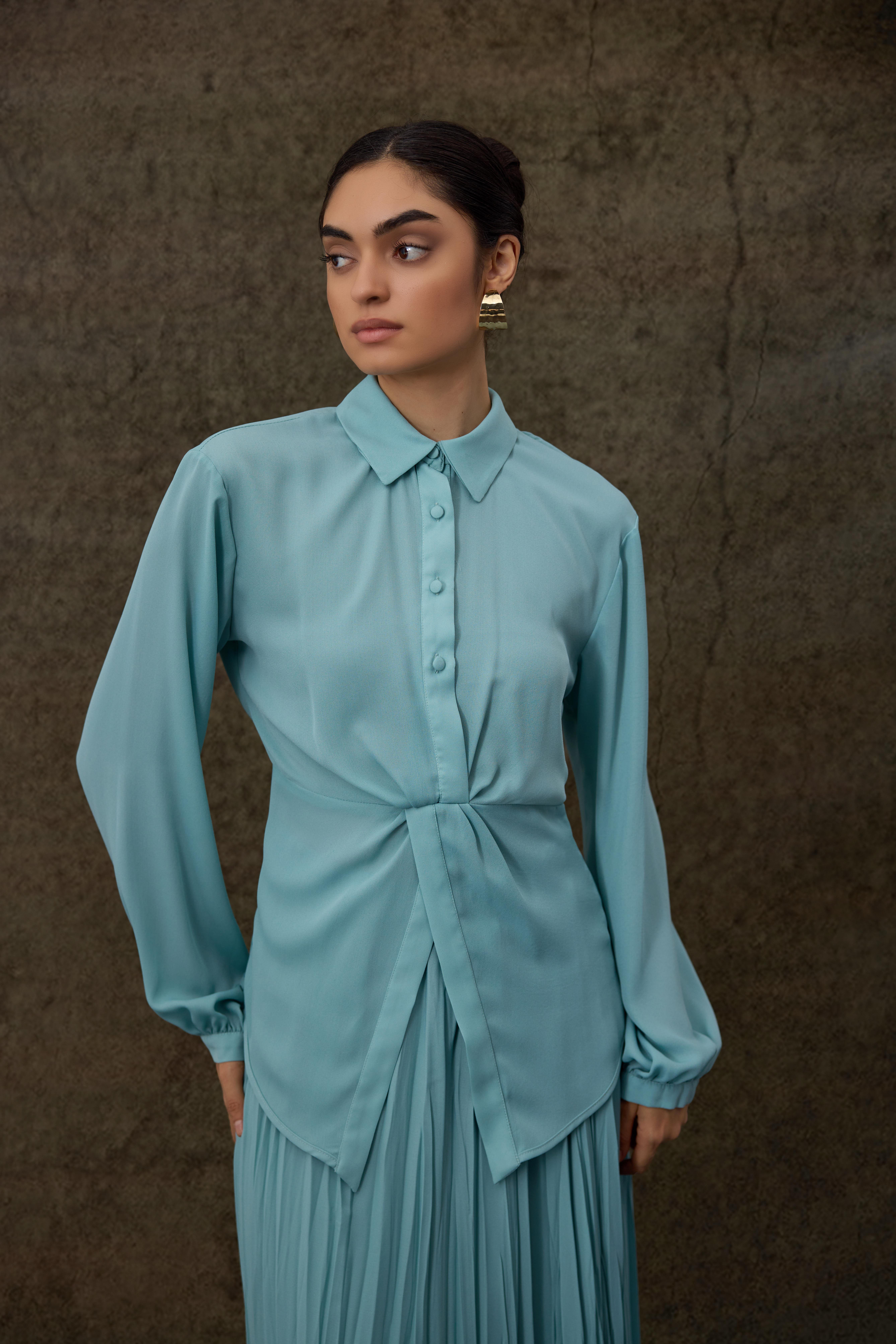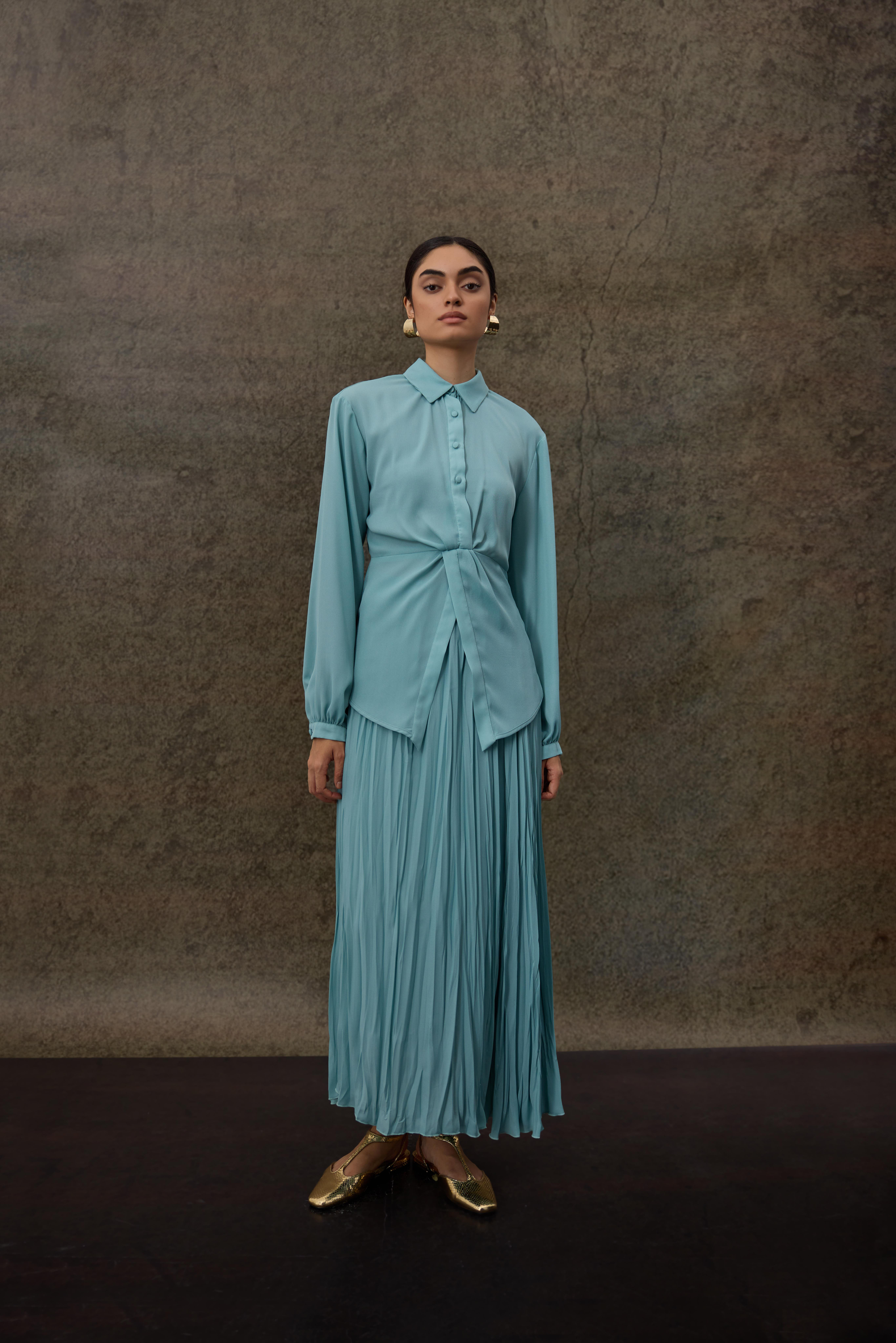 Mavi Gömlek Pilise Etekli Takım (GZ24M52430201_006)