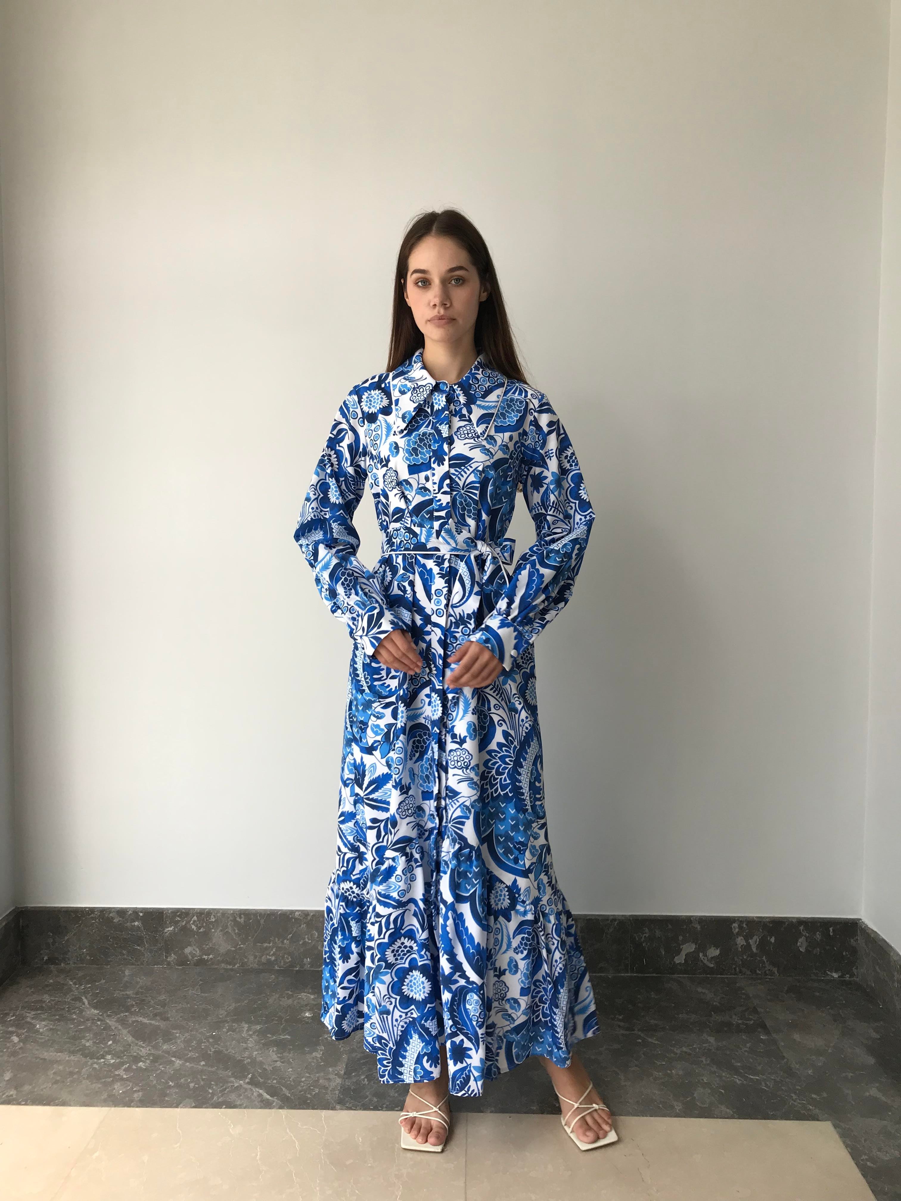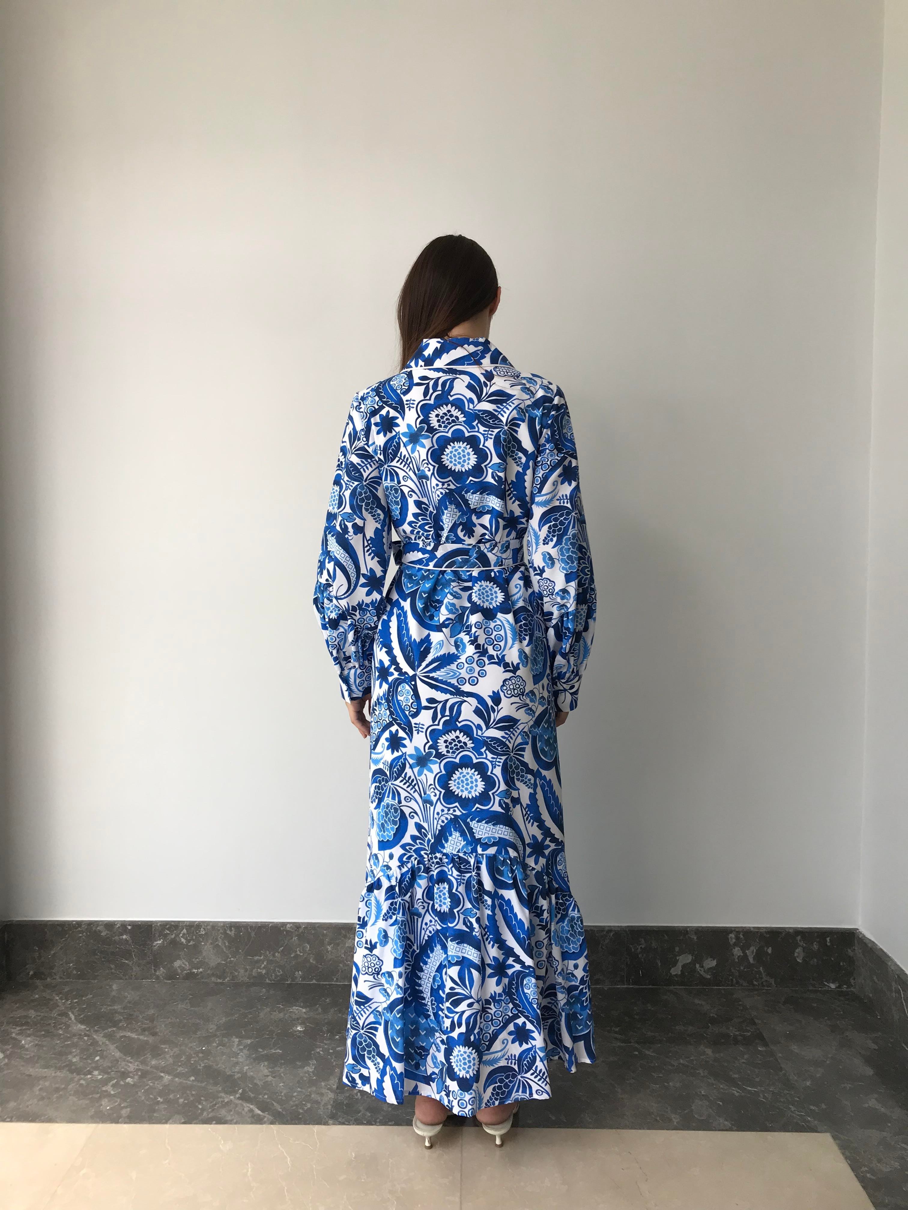 · Ürün Özelliği: Gömlek Yaka, Ön Patlı Düğme Detaylı, Kol Manşetli, Takma Kol, Etek Ucu Büzgülü, Bel Kemerli, Normal Kalıp.