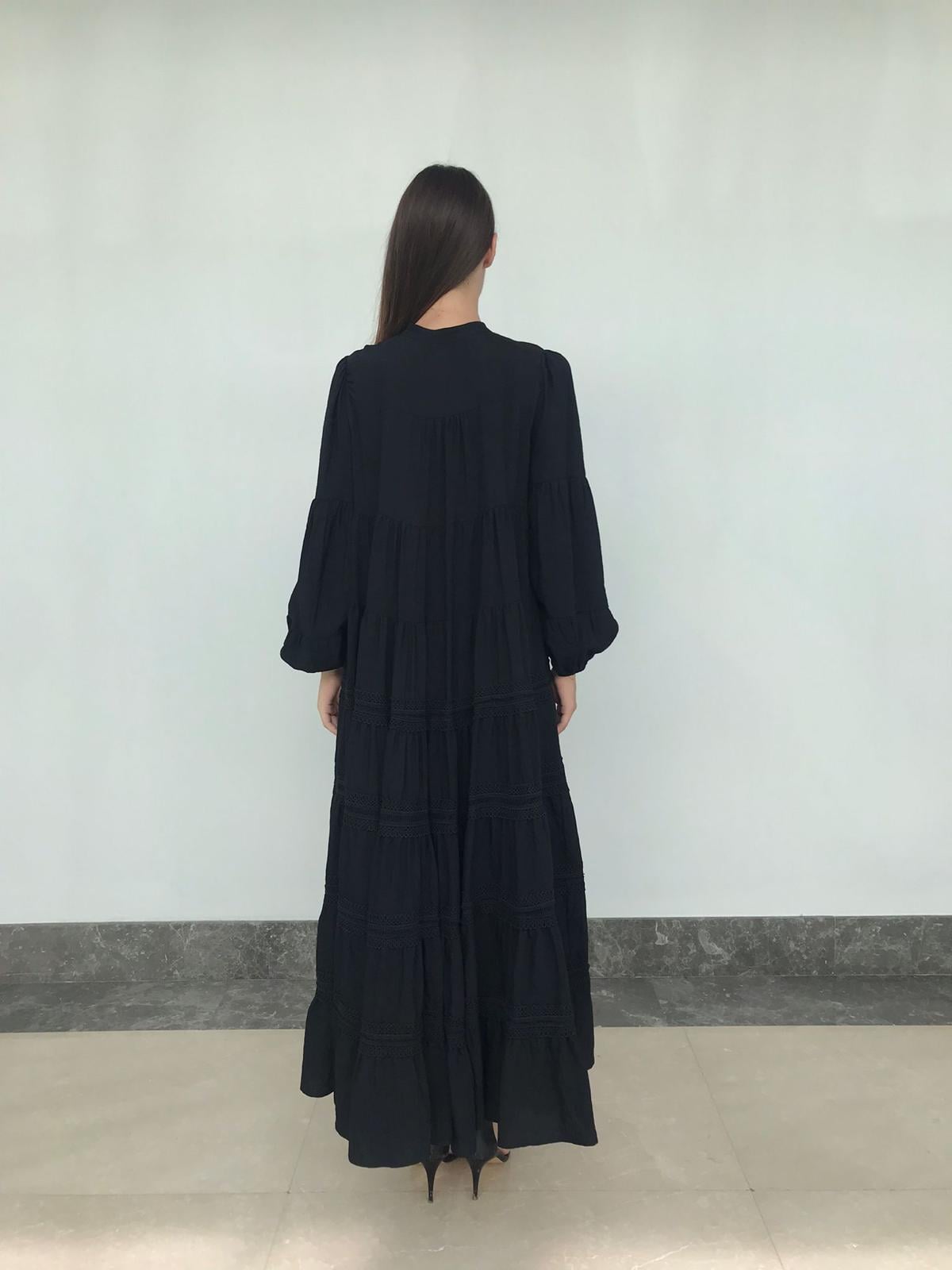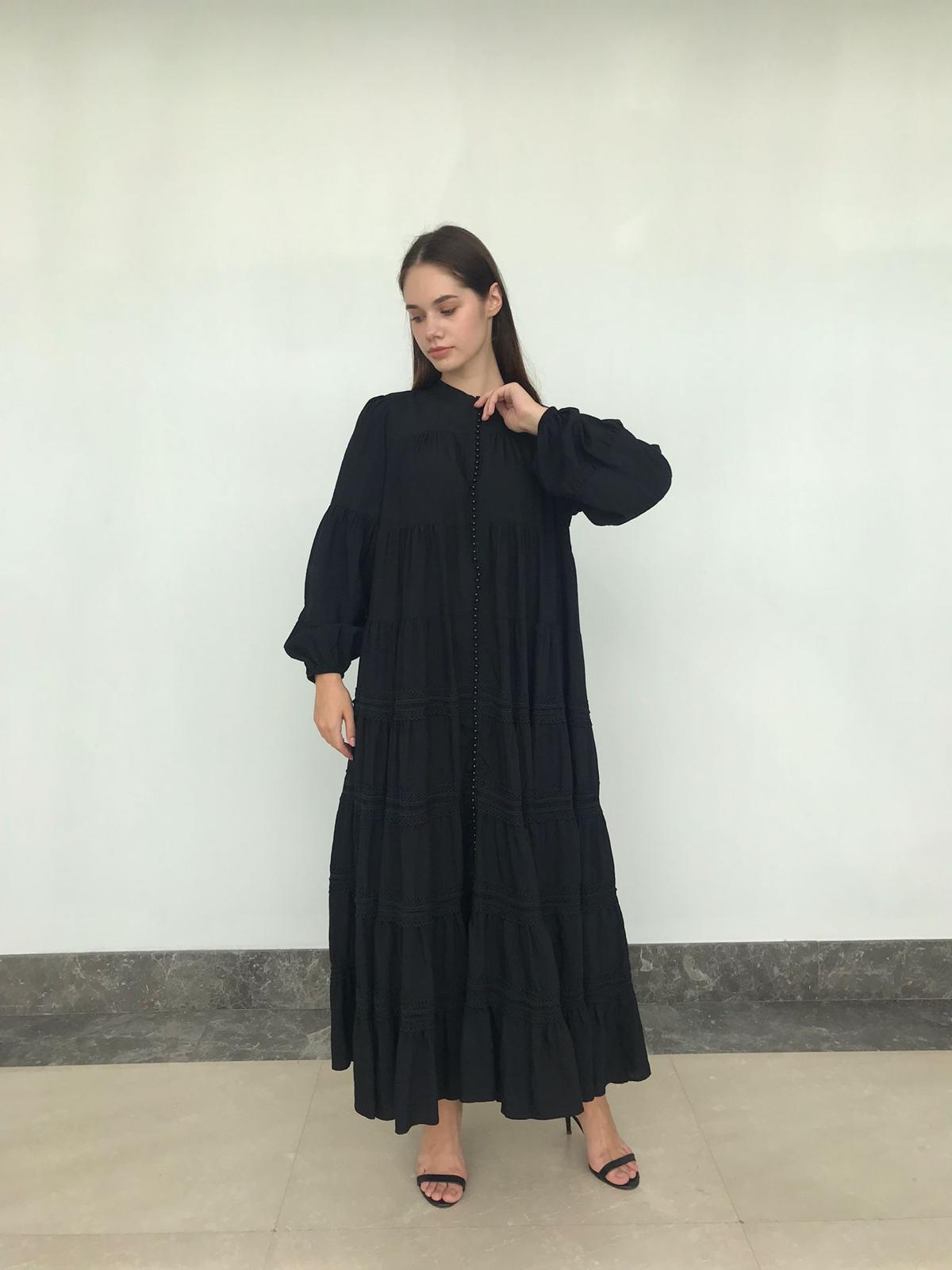 Siyah Büzgülü Dantel Detaylı Elbise (GZ24Y52430301_001)