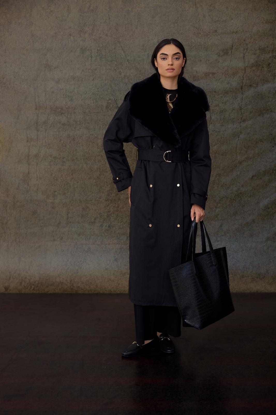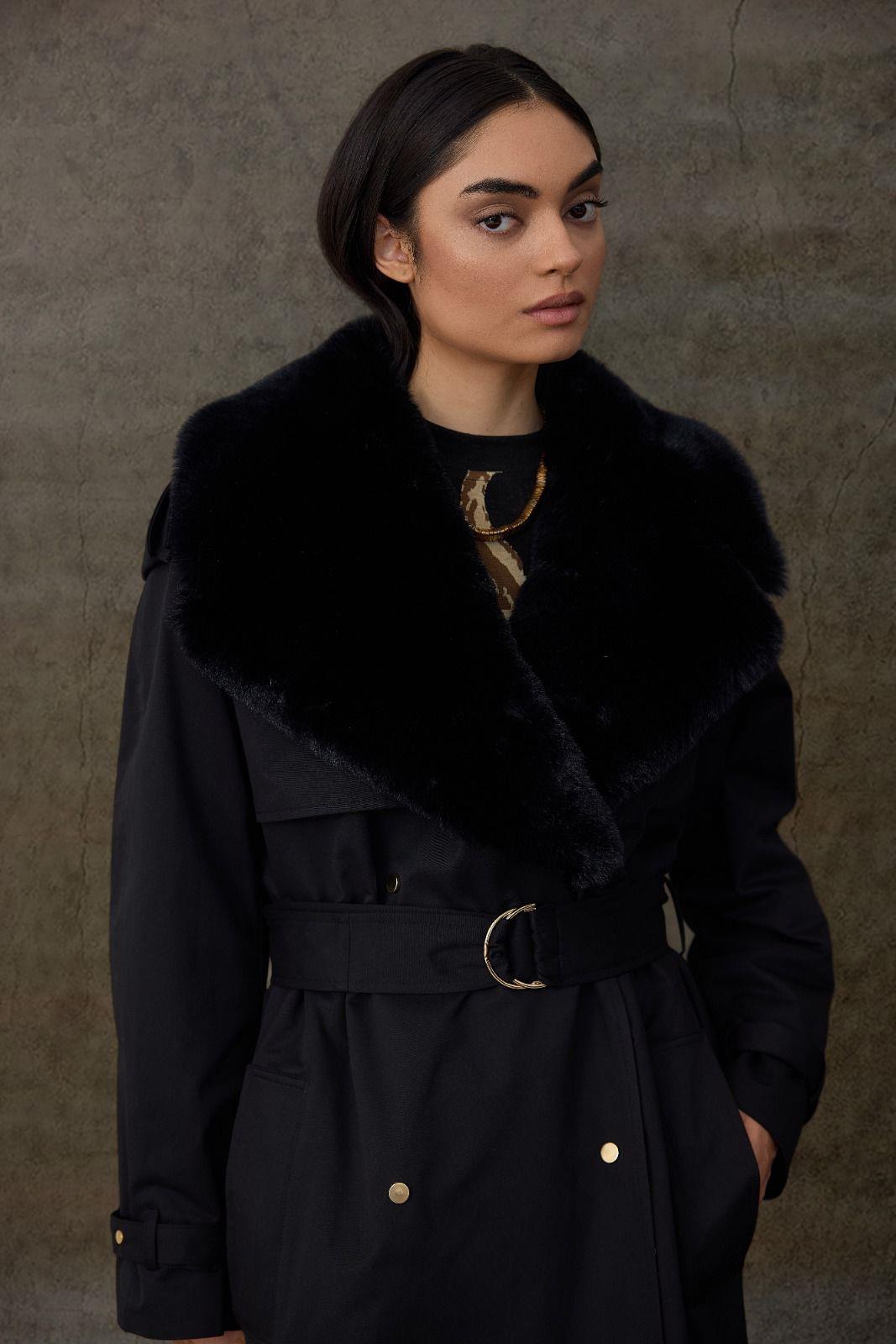 Siyah Kürklü Kadın Trençkot (GZ26K52648301_001)