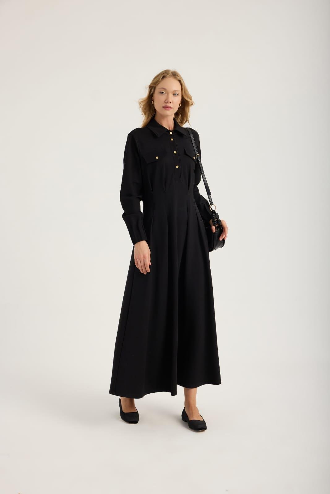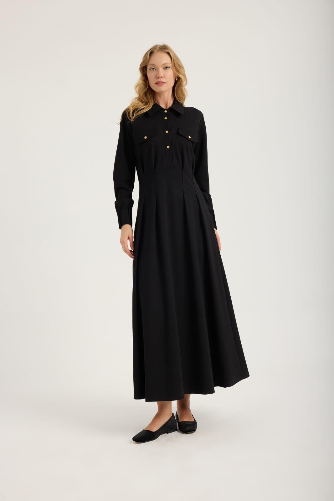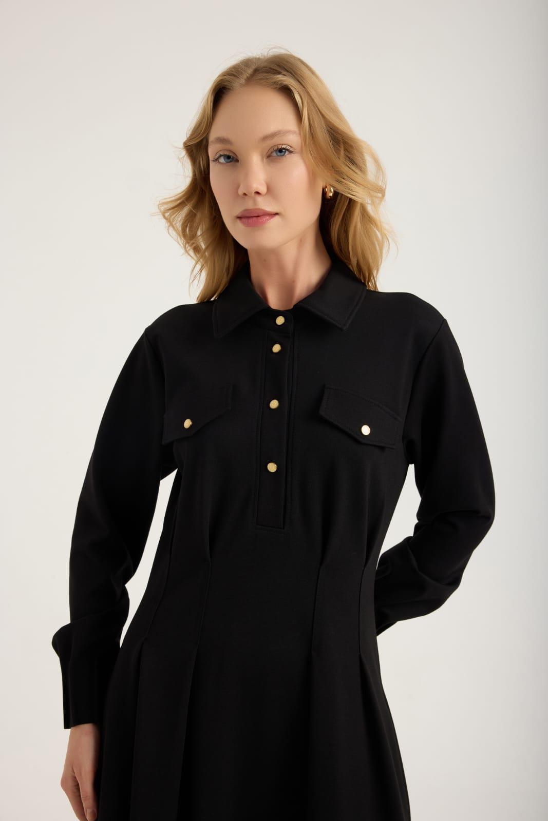 Siyah Nervürlü Örme Elbise (GZ26K52648501_001)