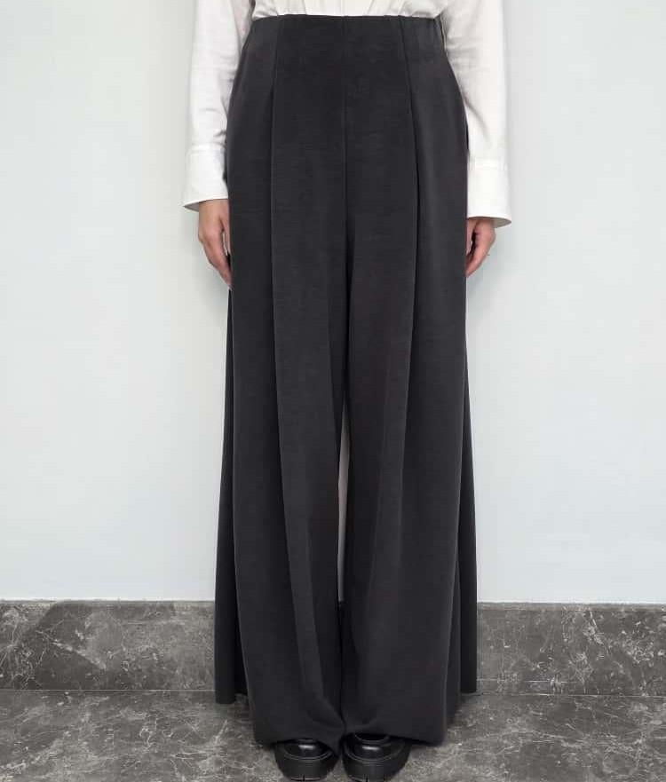 Siyah Pile Detaylı Bol Pantolon Vizon Pile Detaylı Bol Pantolon