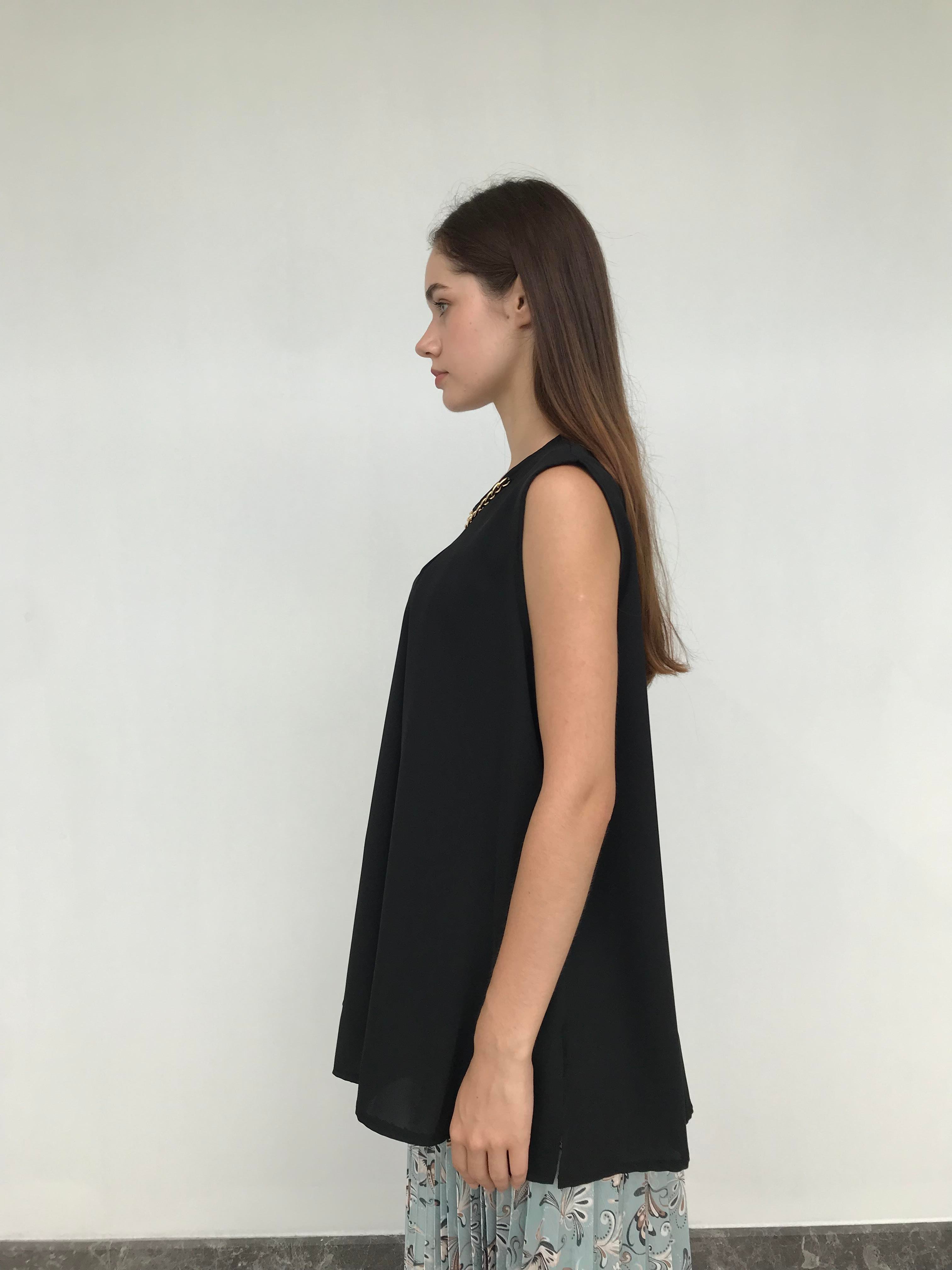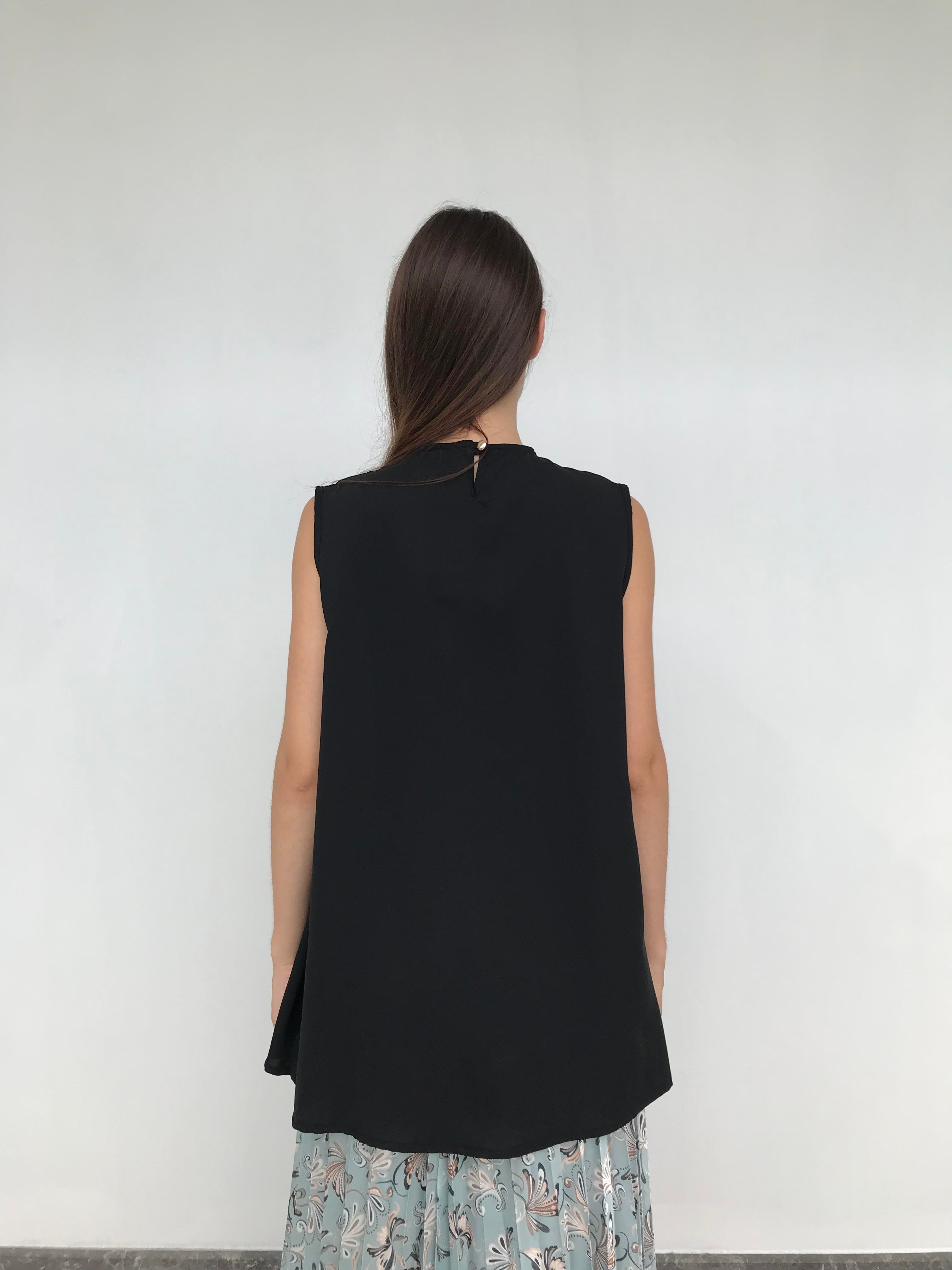 Siyah Yakası Taşlı Kolsuz Bluz (GZ23Y94000001_001)
