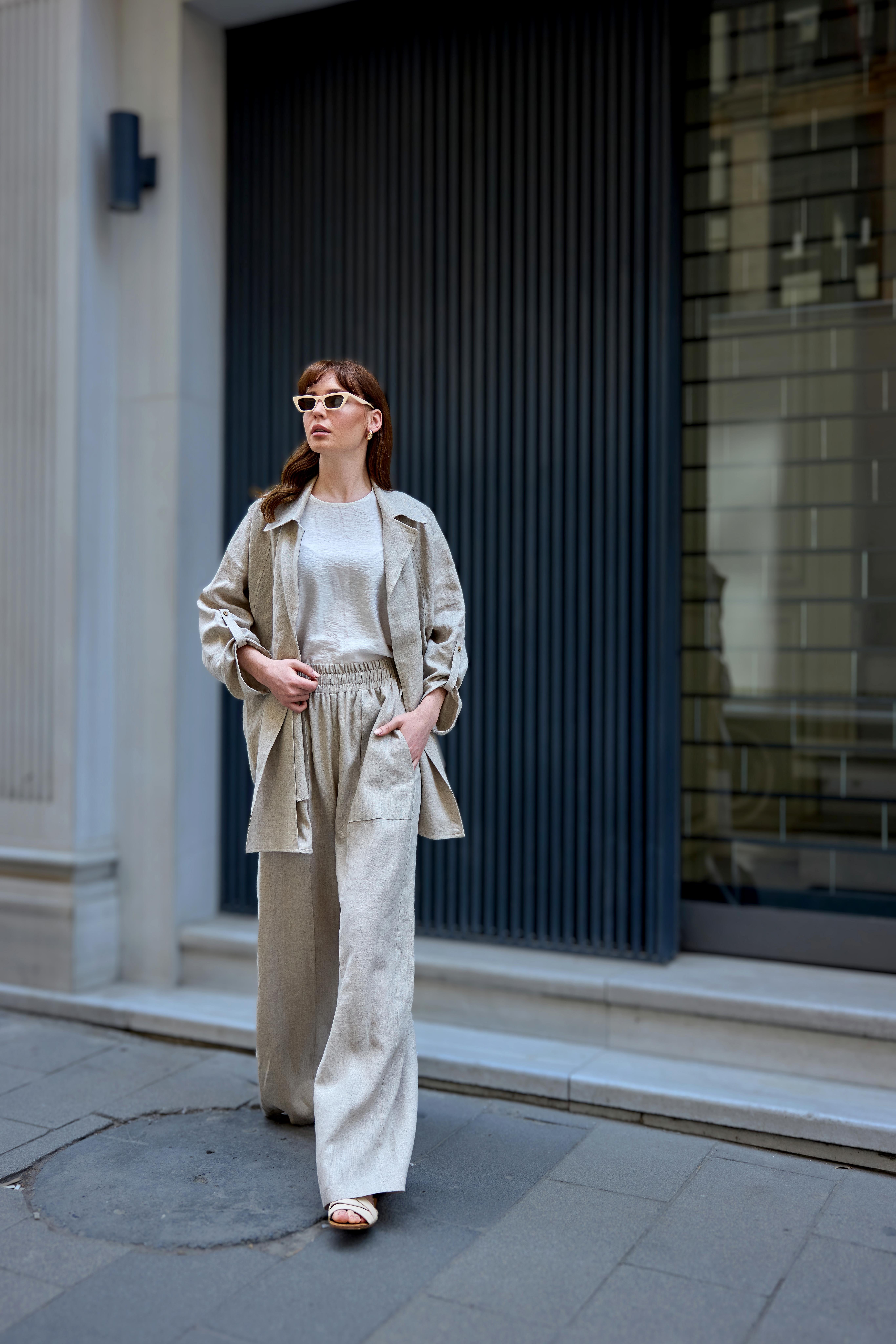 Taş Takma Cepli Keten Bol Paça Pantolon