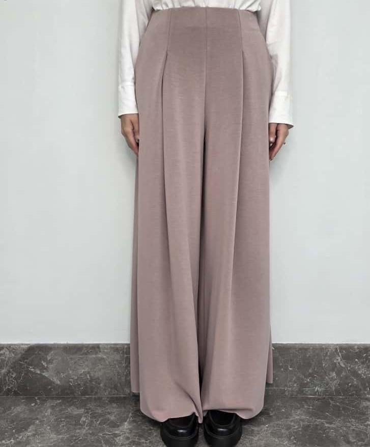 Siyah Pile Detaylı Bol Pantolon Vizon Pile Detaylı Bol Pantolon