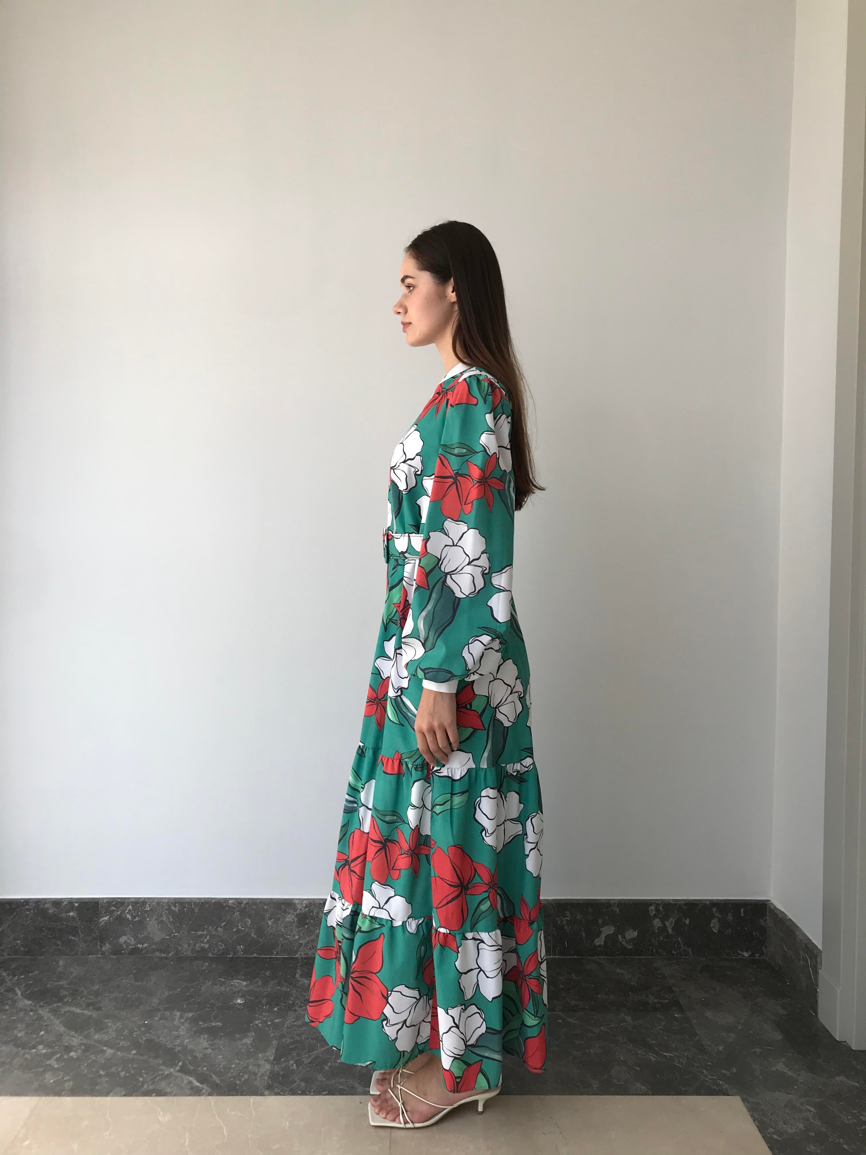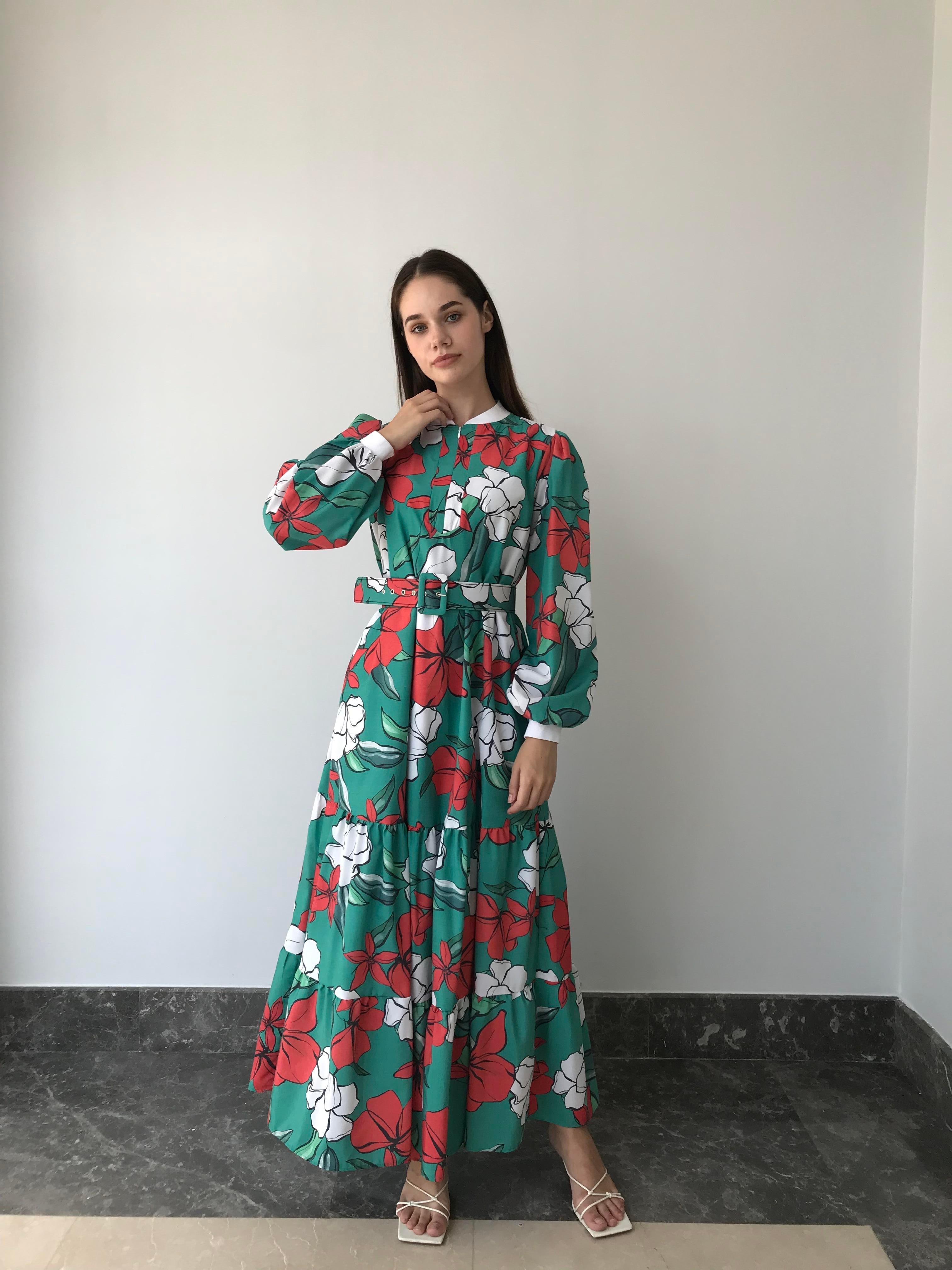 Kemerli Büzgülü Desenli Poplin Elbise Özellikleri: